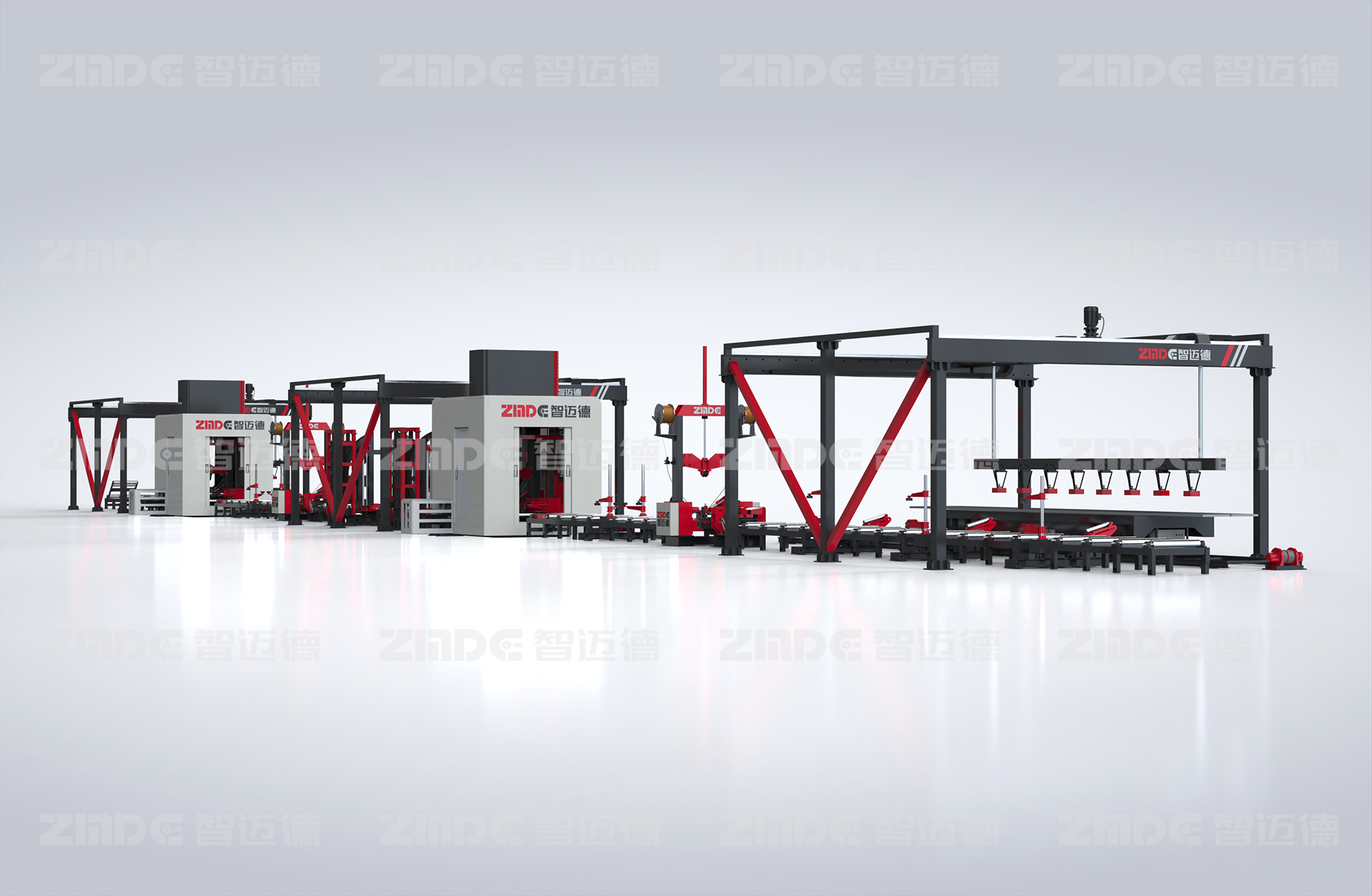这条自动化生产线就是智迈德研发生产的装配式建筑钢梁全自动一次成型生产线。