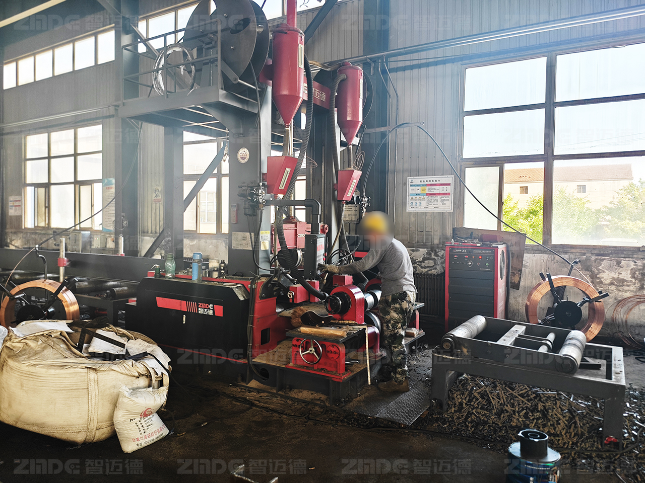 组焊矫一体机将组立、焊接、矫正三道钢结构生产的关键工序,集成在一台设备上,通过精密、集成的设计和智能化控制系统,能够实现整个过程的自动化、智能化生产。设备仅需1~2人即可完成操作,可自动对中,无需点焊,腹板18mm以下免坡口焊接,采用热焊热矫工艺,从头焊到尾,提高了生产效率,提升了钢构件的加工精度和品质。与此同时,可选配智迈德自研新型焊机,满足各类板材的焊接需求,提升焊接效率与焊接品质。