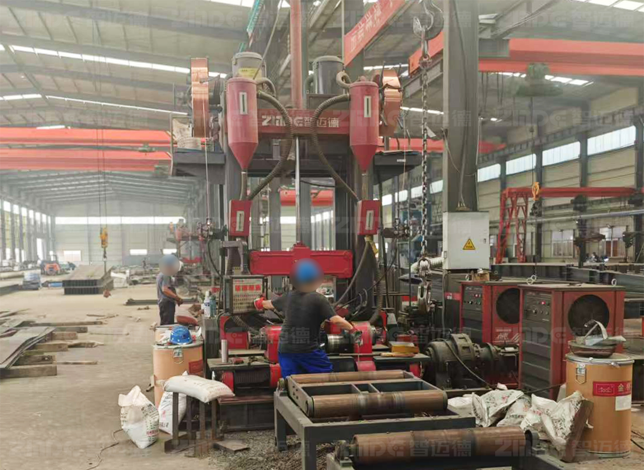 组焊矫一体机的核心优势,在于以高度集成化实现对钢结构生产流程的重构,这并非简单的功能叠加,而是创新性地将组立、焊接、矫正三道钢结构生产的关键工序,集成在一台设备上,通过精密、集成的设计和智能化控制系统,能够实现整个过程的自动化、智能化生产。该设备仅需1~2人即可完成操作,可自动对中,无需点焊,腹板18mm以下免坡口焊接,采用热焊热矫工艺,从头焊到尾,提高了生产效率,提升了钢构件的加工精度和品质。与此同时,可选配智迈德“绝影”三极三弧焊机,大幅提升焊接效率,或选配智迈德“乌骓”六极六弧焊机的组焊矫一体机,实现厚板的焊接。